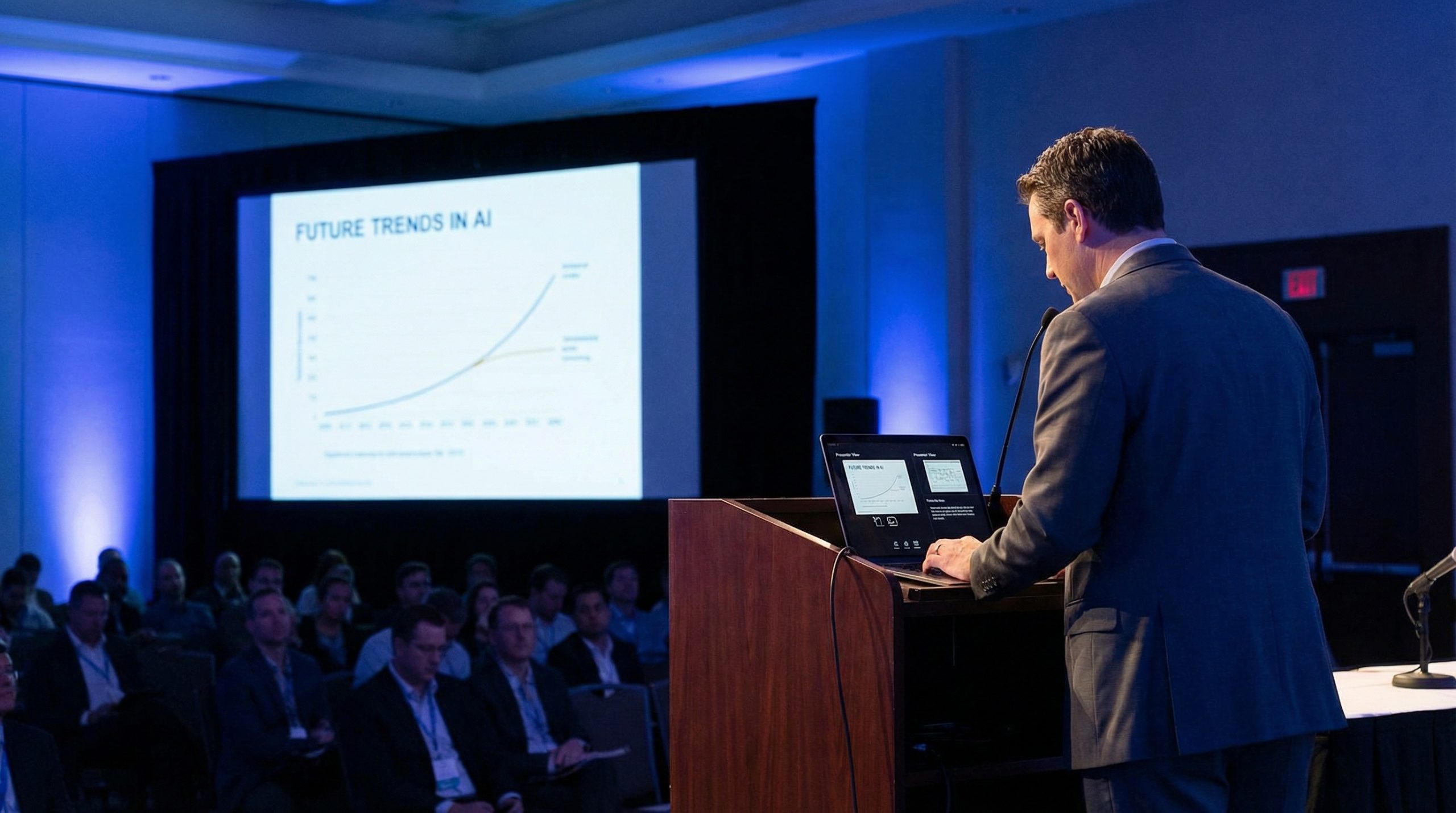 Set up Presenter View before your audience arrives. Do a test run to make sure the right screen shows the right content. And write notes that you can actually use under pressure — short, bold, and structured.